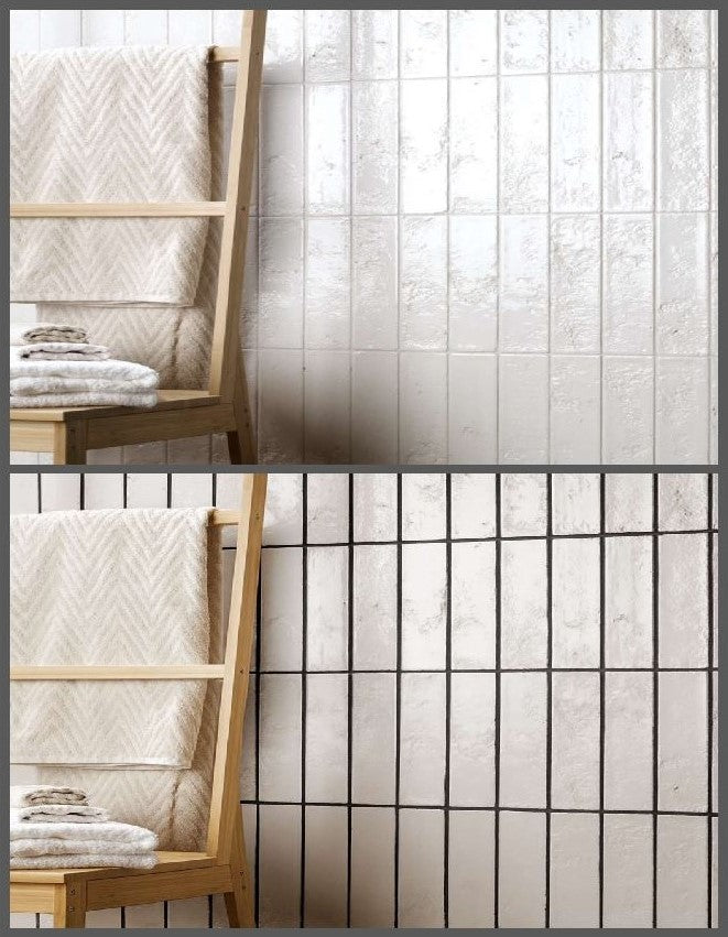 - Dark grout tends to tighten the space, creating intimacy or a cocooning effect—especially effective in small powder rooms or moody feature walls.