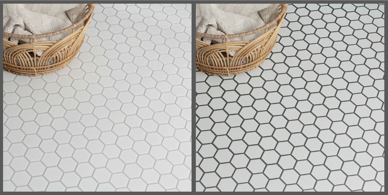 - Grout can modernize traditional tiles or soften contemporary ones. For instance, pairing classic white hexagonal mosaic tiles with charcoal grout gives a vintage look a modern edge, while white-on-white keeps it timeless.