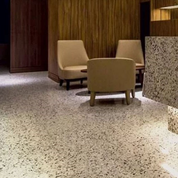 Each slab is honed for a smooth, architectural finish, showcasing a rich blend of multicoloured chips in a neutral base. Whether you're designing a gallery-style living space, a boutique commercial fit-out, or a high-traffic hospitality zone, Granito terrazzo offers enduring beauty with low maintenance and high performance.