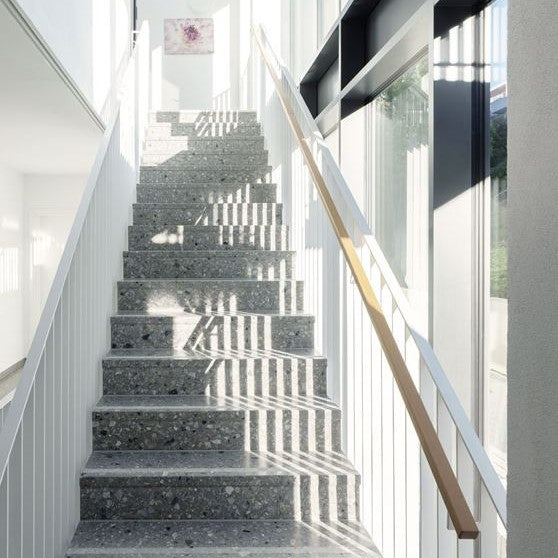 "Elevate your interiors with the timeless elegance of Granito terrazzo, reimagined in a 1420×2530mm format. Made in Verona, Italy, these slabs are crafted from recycled marble aggregate and Portland cement, without resins or polymers—delivering a natural, VOC-free surface that’s ideal for green building projects."