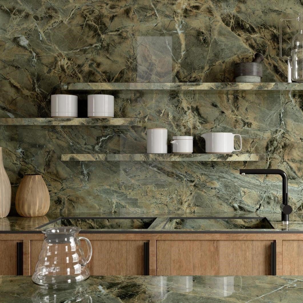 1620x3240x12 Grande Porcelain Slab Marble Look Verde Borgogna Lux (Gloss) by Marazzi