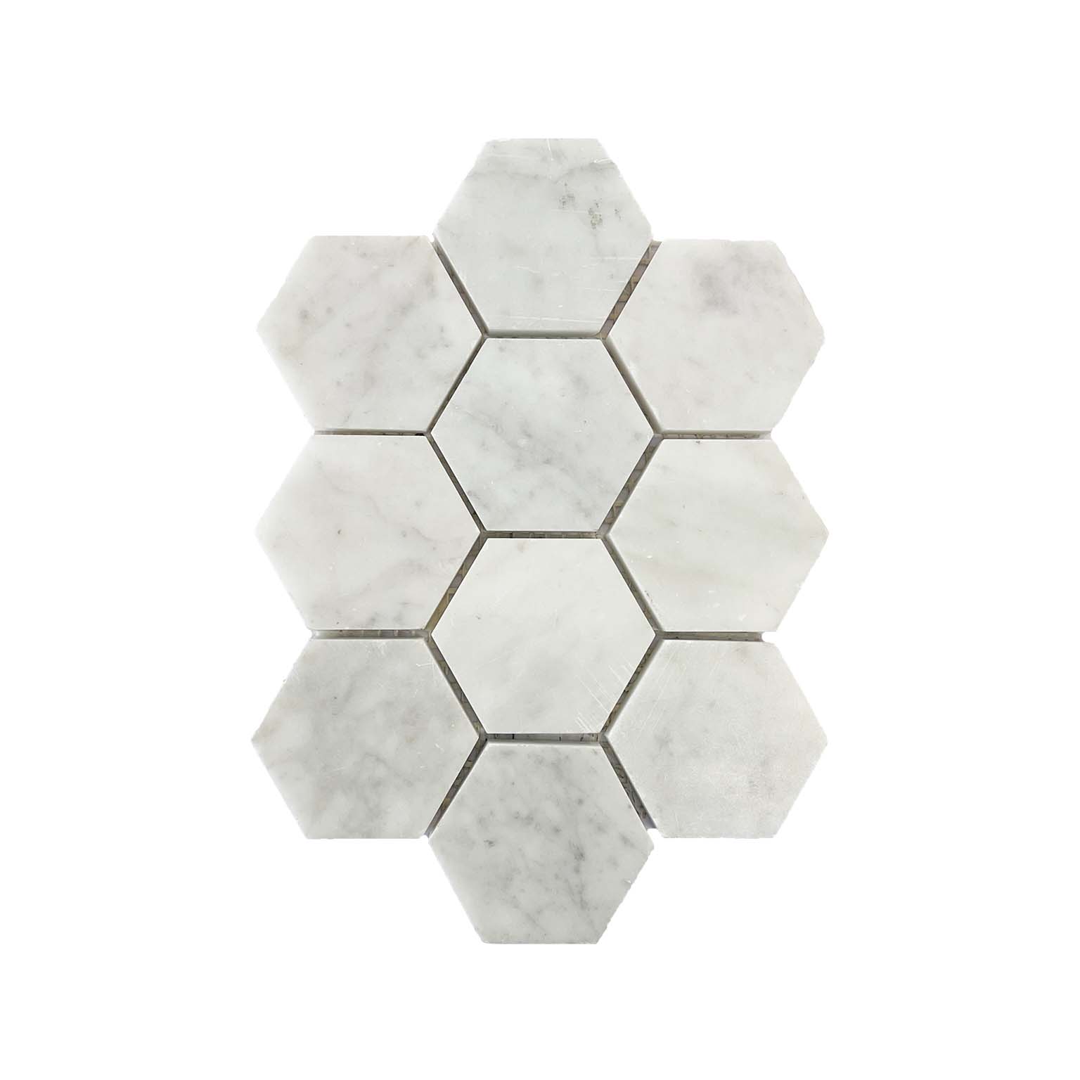 95x95 Hexagon Carrara Honed Marble Mosaic Tiles